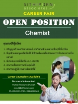 เปิดรับสมัครงานตำแหน่ง Chemist จำนวน 3 อัตรา